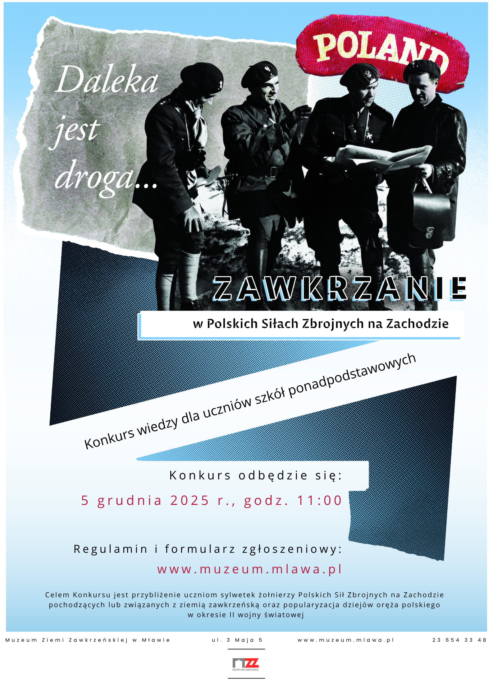 Muzeum Ziemi Zawkrzeńskiej w Mławie ogłasza konkurs wiedzy „Zawkrzanie w Polskich Siłach Zbrojnych na Zachodzie”, skierowany do uczniów szkół ponadpodstawowych z terenu powiatu mławskiego.